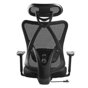 A szék magas, hálós háttámlája hatékony szellőzést biztosít, miközben rugalmasságának köszönhetően jól követi a test vonalát. A háttámlához tartozó fejtámla nemcsak magasságban, de dőlésszögben is állítható, így a nyak és a váll megfelelő alátámasztást kap, csökkentve a feszültséget a hosszabb ülés során.