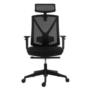 A szék középmagas hálós háttámlával rendelkezik, amely megfelelő szellőzést biztosít, míg az állítható deréktámasz személyre szabható kényelmet nyújt az alsó háti szakasznak. A különleges 2D fejtámla magassága állítható, így további 15-22 cm-rel növeli meg a háttámla magasságát, ideális megtámasztást kínálva a nyak- és vállizmok számára.