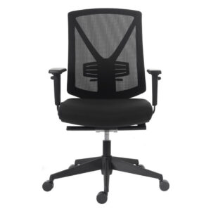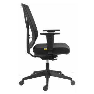 A szék XL méretű ülőlapja fekete szövetkárpittal készült, amely kényelmes és tartós használatot biztosít. A középmagas, hálós háttámla légáteresztő anyagból készült, így még hosszú munkaidő alatt is kellemes ülésklímát nyújt, miközben az állítható deréktámasz optimális megtámasztást ad a hát számára.