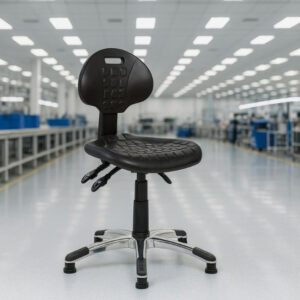 A poliuretán ülés és háttámla ellenáll a nedvességnek, vegyi anyagoknak és a mechanikai sérüléseknek, így a szék ideális laboratóriumokba, gyártósorok mellé és műhelyekbe.